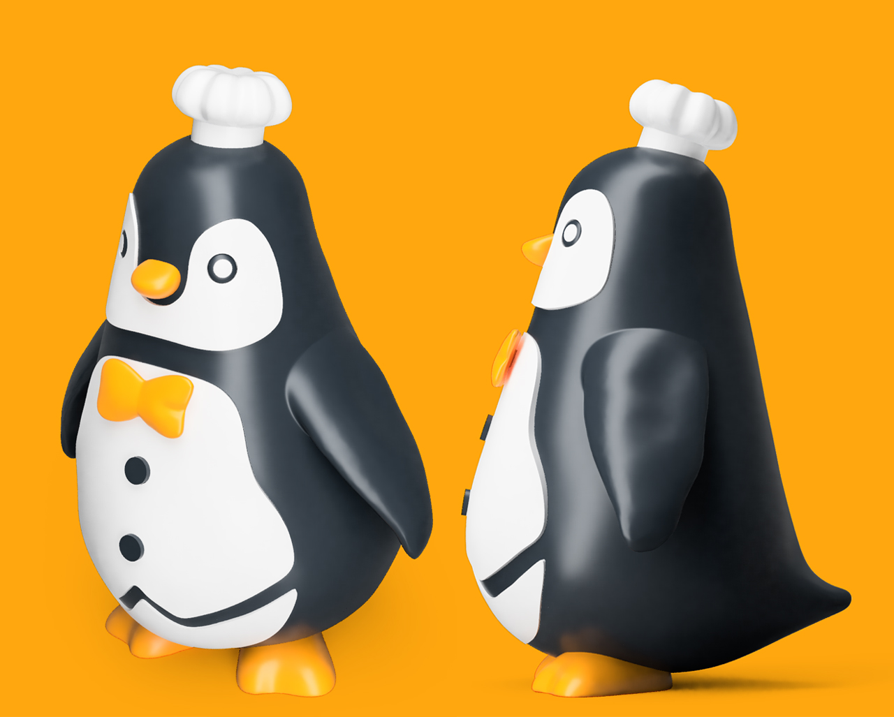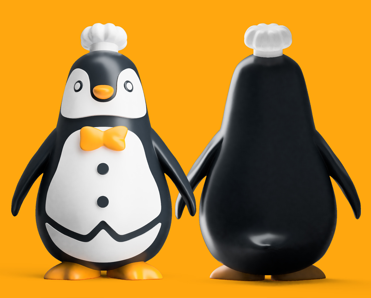 펭귄 캐릭터인데 뚱뚱하고 귀여운 느낌을 강조하는 방향으로 작업 진행했습니다.