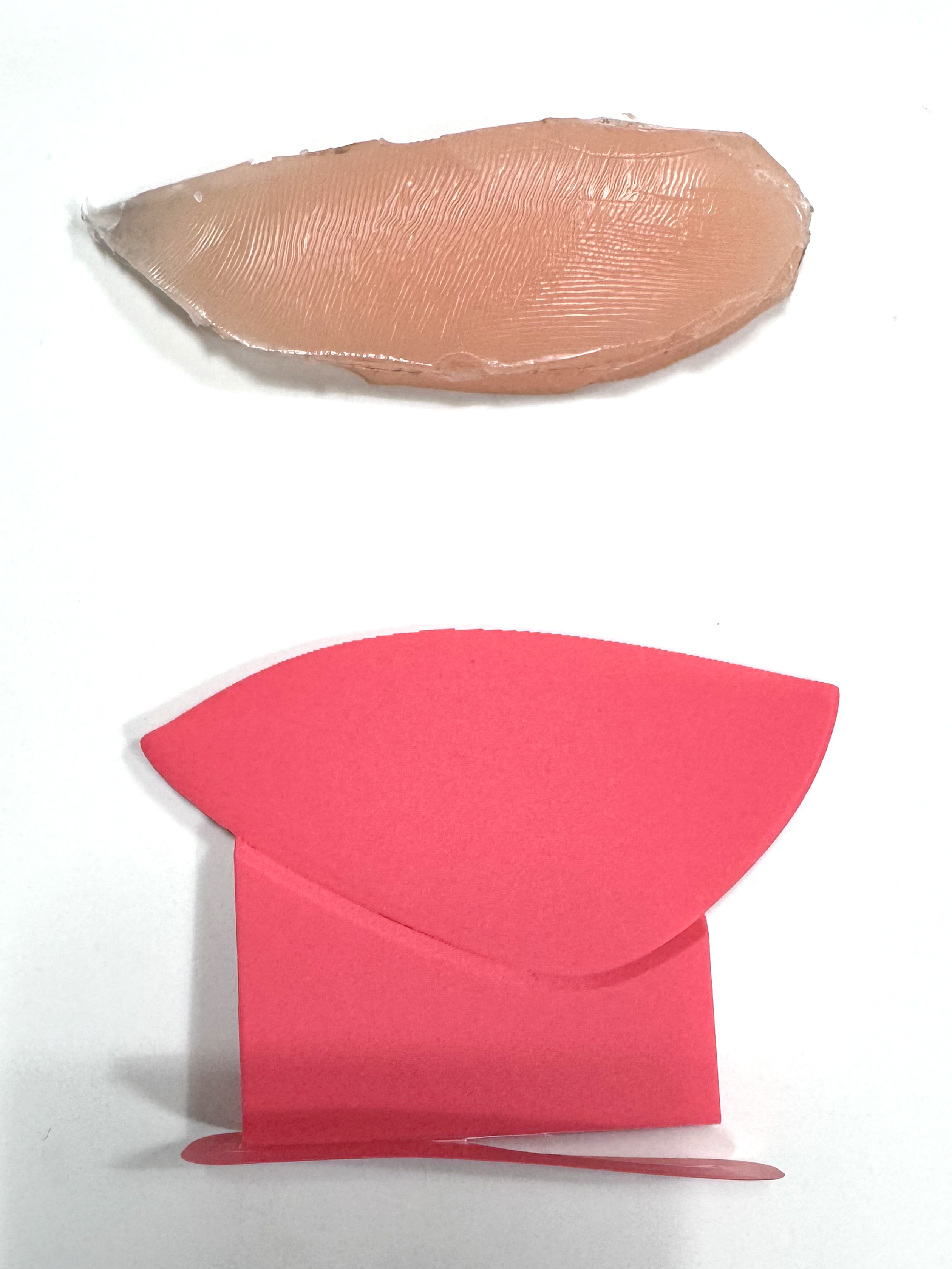 의뢰자 분께서 따로 스케치나 모델링 파일은 없고 비슷한 재질의 실리콘을 자르고 붙여 만든게 있다고 하셔서 상담을 통해 모양 및 사이즈를 결정하였습니다. (연어사시미 같아 보이는게 실리콘 입니다.)